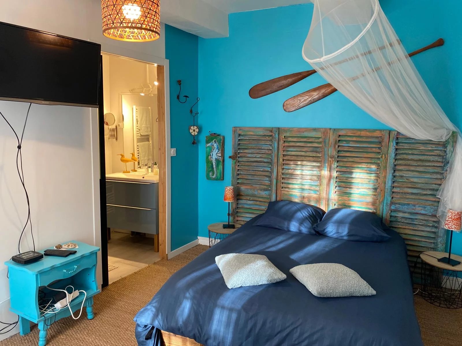 Chambre donnant sur la terrasse avec douche, lavabo et WC indépendant
